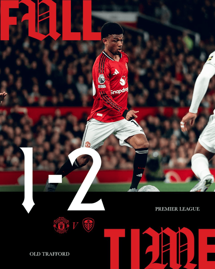 虎扑04月14日讯英超第32轮玫瑰德比,曼联主场1比2不敌利兹联。