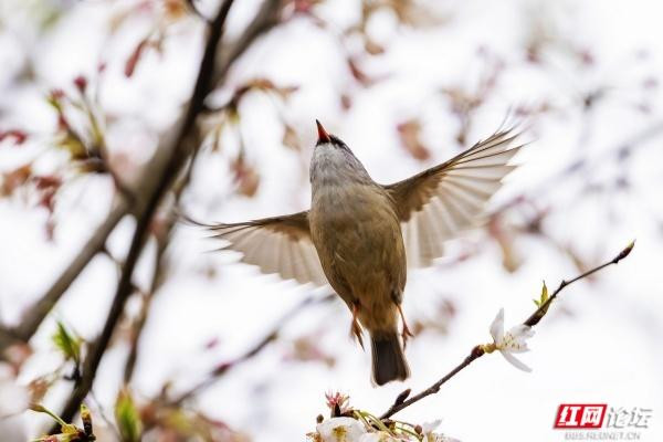 春风拂过,满树樱花如雪绽放,细碎的花瓣缀满枝头,在暖阳下漾起温柔的光晕,也成了林间精灵们的春日乐园。